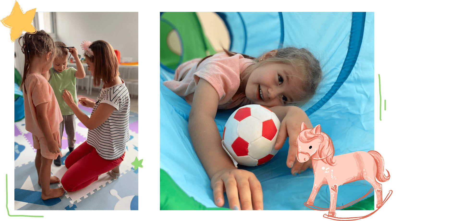 2-3 года - Дети привыкают к пространству, новым взрослым и учатся общаться со сверстниками. Занятие длится 2 часа.